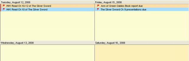 John puts the assignment information directly in the calendar entry. This is a calendar entry. Notice the homework assignment listed at the bottom. There is also a link to a web site that discusses the content further.