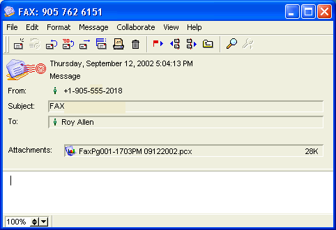 A fax message will look like this:
