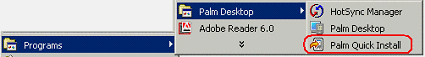 2       Chose Programs > Palm Desktop > Palm Quick Install and follow the instructions.