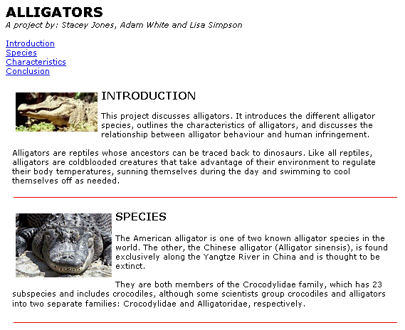 For example, if your students are doing a presentation about alligators, they can choose their font, style and color to put the body of the document together. They can add graphics wherever they want, and even attach a voice message to the document as a wav file. The voice message could be as simple as the sound of an alligator, or as complex as the reading of the entire document. This is a great idea if you wish to showcase the projects in a conference for others to view.