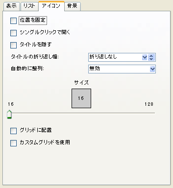 このタブを使用して、このペイン内でのアイコンの動作を設定します。