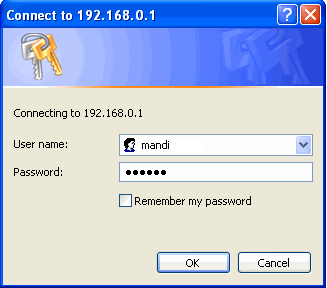 5 When prompted, enter your FirstClass user ID and password. For example: