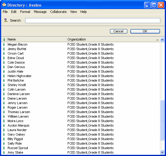 2 Choose a name from the Directory, or use the Shift or Control keys to choose multiple names.